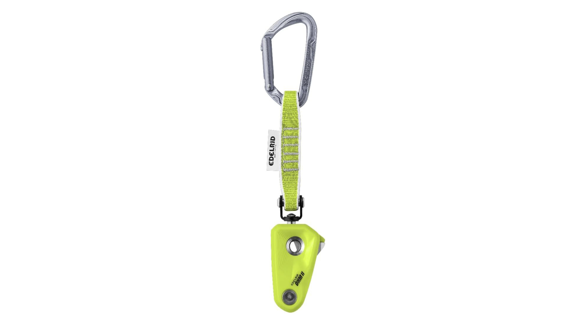 The EDELRID Ohm II is an assisted-braking resistor designed to help belayers manage a significant weight difference with their climbing partner. This innovative device is attached to the first bolt on a route and increases friction on the rope during a fall, effectively making a lighter belayer “25kg heavier.” This reduces the force exerted on the belayer, allowing for a more controlled catch and safer descent. The Ohm II also features a new swivel joint for easier handling, making it an essential piece of equipment for climbing teams of different weights.